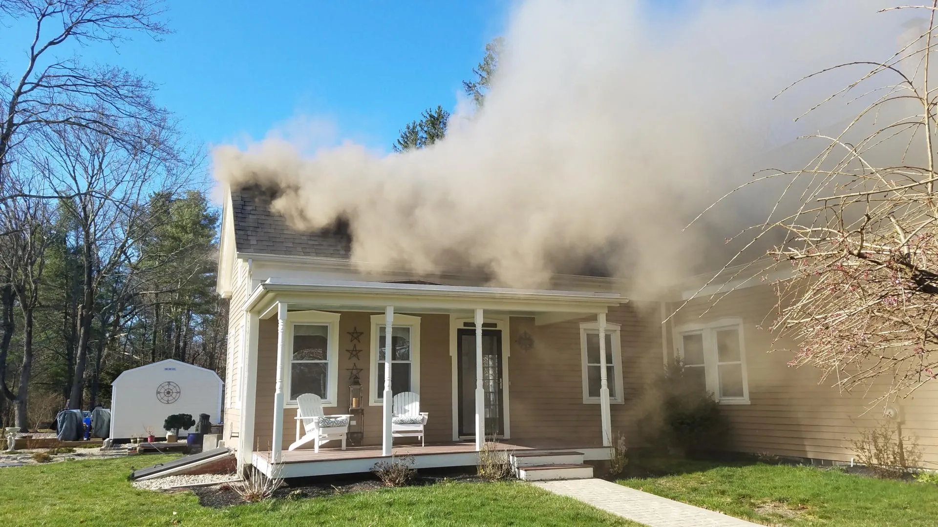 Upon arrival, firefighters saw heavy smoke coming from a one-and-a-half story single-family home. Three residents had made it safely out of the home and were uninjured.