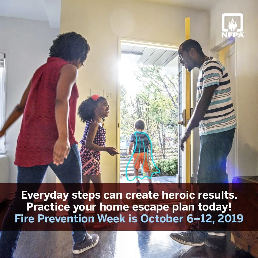 The theme of the 2019 National Fire Prevention Week is “Not Every Hero Wears a Cape. Plan and Practice Your Escape!” in an effort to remind people of the critical importance of creating and practicing an escape plan should a fire start.