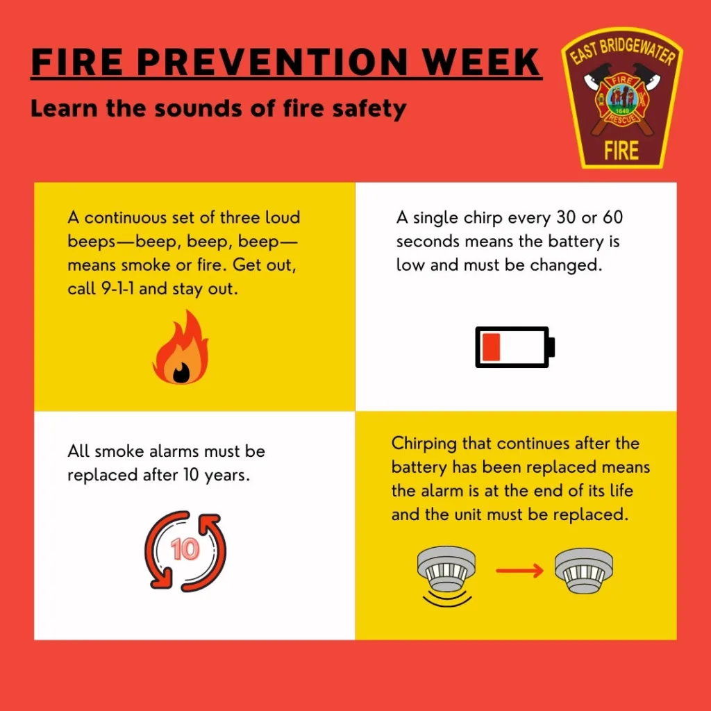 EAST BRIDGEWATER — Chief Timothy Harhen and the East Bridgewater Fire Department urge all residents to “Learn the Sounds of Fire Safety” and to follow several basic tips to help protect their loved ones during Fire Prevention Week, which is being recognized this year from Oct. 3 to 9.
