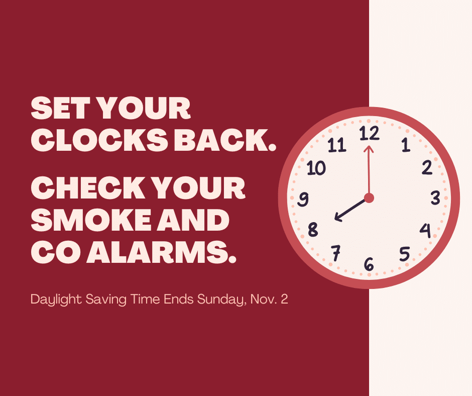 Daylight Saving Time ends on Nov. 2 this year, and the department would like to remind residents to check their smoke and carbon monoxide alarms…